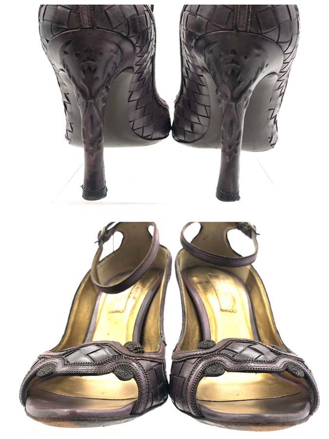 ■商品概要Bottega Veneta ボッテガヴェネタイントレチャートオープントゥパンプス ミュール ヒールレザーブラウンイタリア製サイズ34.5(21.5cm) レディースラグジュアリー 高級 ハイブランド