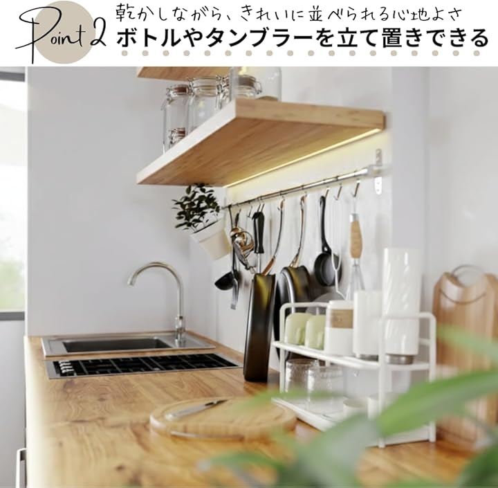 「乾かしながら、きれいに並べられる心地よさ」洗ったボトルやタンブラーを立てて置けるボトルスタンド。