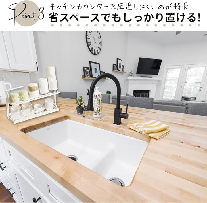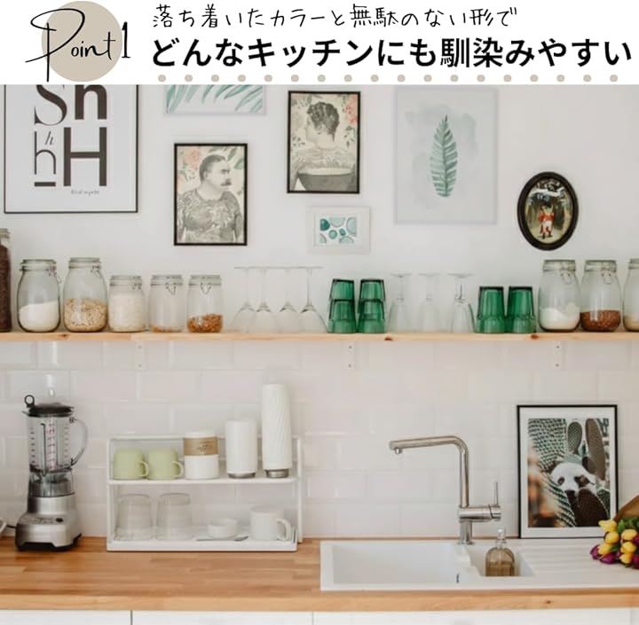 「省スペースでも、しっかり置ける」縦の空間を活かした構造で、キッチンカウンターを圧迫しにくいのが特長。