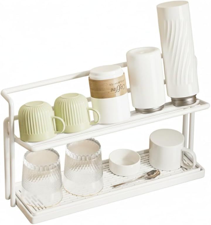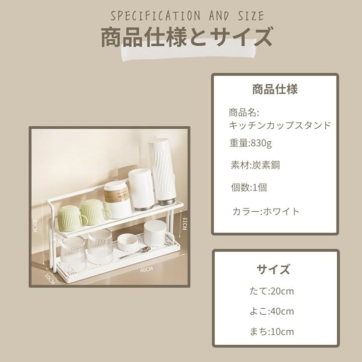 「商品仕様」商品名:キッチンカップスタンド 重量:830g 素材:炭素鋼 個数:1個 カラー:ホワイト サイズ:縦20cm 横40cm まち10cm
