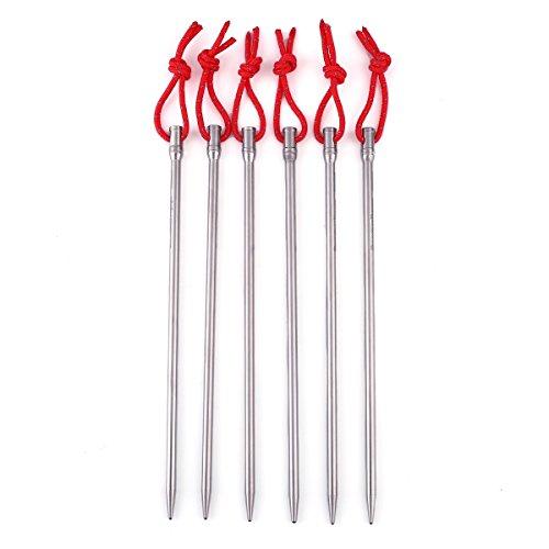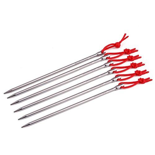 素材:チタン合金。 重さ:約18g/本。 サイズ:20cm(長さ)x 0.5cm(直径)錆びなく、頑丈高強度のチタン合金で作られているので、折れたり曲がったりしません。高強度のチタン合金ペグは耐腐食性、耐久性に優れています。柔らかい土、硬い土に関わらず、スムーズに釘を挿し込むことが可能です。テント固定がしっかりして、軽くて持ち運びが便利なテント専用のペグ キャンプ設営用具。山地キャンプ場は草地・硬い地面ですからキャンプファンにとって金属ペグは必需品です。