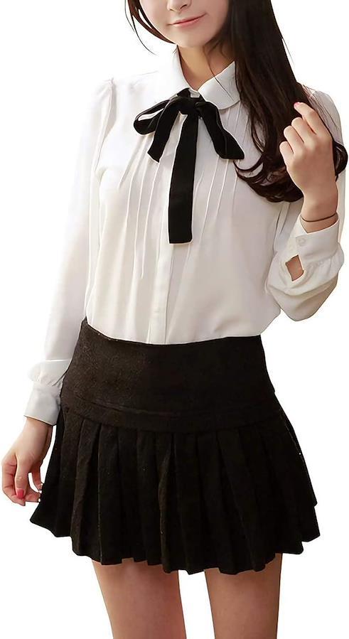 またタイを外して黒のロングパンツ、ジーンズやデニム、ガウチョパンツ、ストレッチパンツ スキニーなクロップドパンツなどと組み合わせてもOKです。