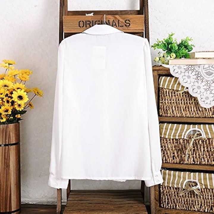 「XSサイズ(約)」着丈58cm 袖丈58cm 胸囲86cm 肩幅36cm「Sサイズ(約)」着丈59cm 袖丈59cm 胸囲90cm 肩幅37cm 「Mサイズ(約)」着丈60cm 袖丈60cm 胸囲94cm 肩幅38cm 「Lサイズ(約)」着丈61cm 袖丈:61cm 胸囲98cm 肩幅39cm「XLサイズ(約)」着丈62cm 袖丈62cm 胸囲102cm 肩幅40cm 「2XLサイズ(約)」着丈65cm 袖丈64cm 胸囲108cm 肩幅41cm「3XLサイズ(約)」着丈67cm 袖丈65cm 胸囲114cm 肩幅42cm 「素材」ポリエステル 「カラー」ホワイト リボンとブラウスのコーディネートが可愛いらしい、ボウタイ付きのシフォンシャツです。