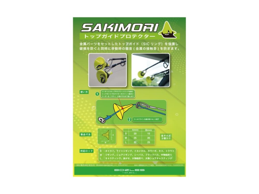 トップガイドプロテクターサキモリは、金属パーツをセットしたロッドのトップガイド(SICリング)を保護し、金属パーツとの干渉による破損を防ぎます。