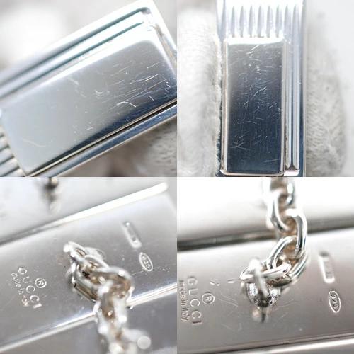 | コメント | グッチの定番人気アイテム、カットアウトGリングをイメージさせる、ライン模様が印象的な、スターリングシルバー製 スクエア カフス。 グッチならではのスタイルで、モダンでエレガントなアクセントを効かせます。 |