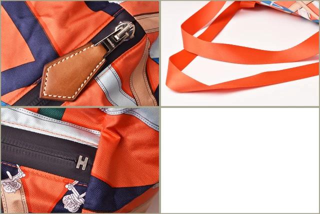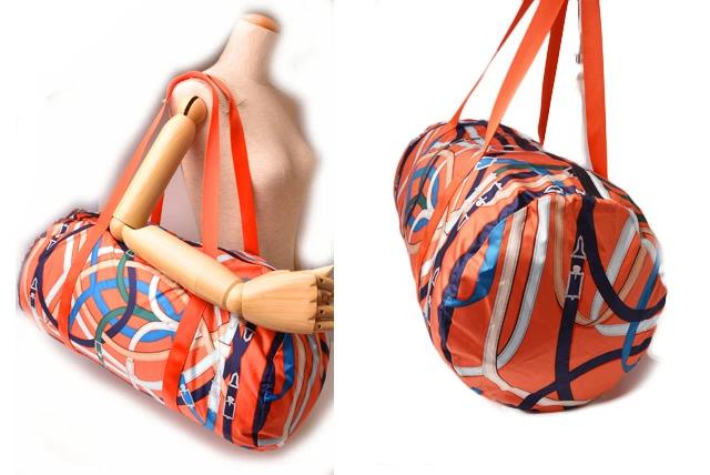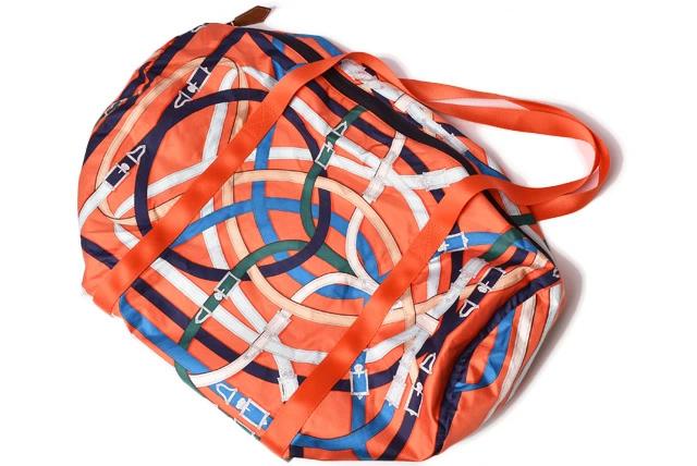 エルメスより、ショッピングバッグです。スカーフでも人気の柄カヴァルカドゥール!美しいシルクプリント。オレンジを基調にマルチカラーが映えます。 軽量で折りたたむとポケッタブルになるので、ショッピングや旅行などの持ち運びに最適です。内側のポケットに、コンパクトに収まります。