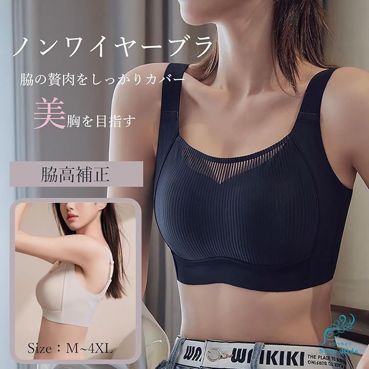 胸元をすっきり見せる設計で、シルエットを自然に整えるノンワイヤーブラ。
