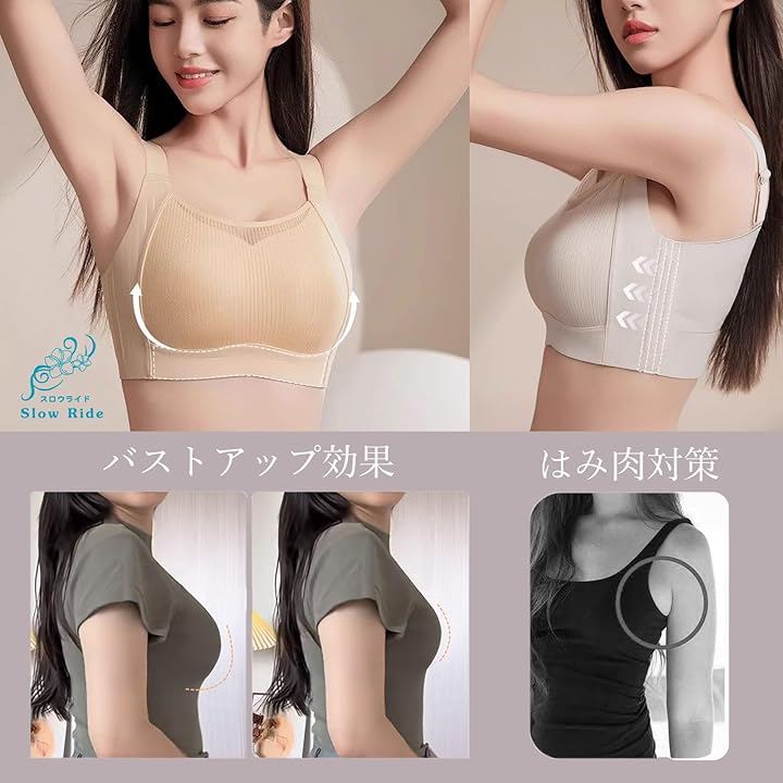 胸元をすっきり見せる設計で、シルエットを自然に整えるノンワイヤーブラ。