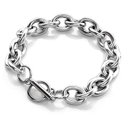 Bracelet for men and women, stainless steel mantle chain, silver (width: 12mm, length: 21cm)