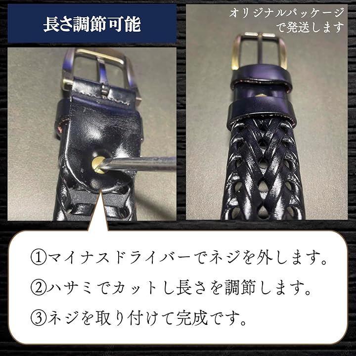 「仕様」サイズ 全長=115cm 革部分の厚み:約5mm バックル部分=タテ: 55mm ヨコ幅:45mm 重さ170g 《素材》レーヨン・牛革(3層構造) 「両側:牛革/中心部:レーヨン」丈夫なレーヨン素材に両側から牛革を編み込み、メッシュに仕上げています