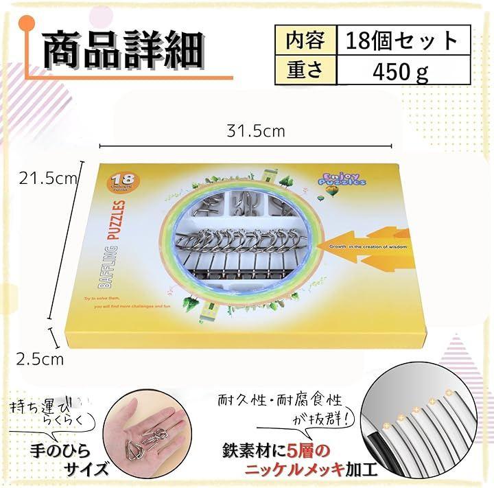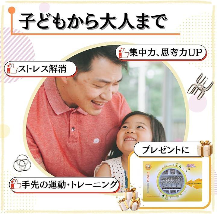 「商品概要」数種類のリングパズルが収録された知的遊びのセットです。