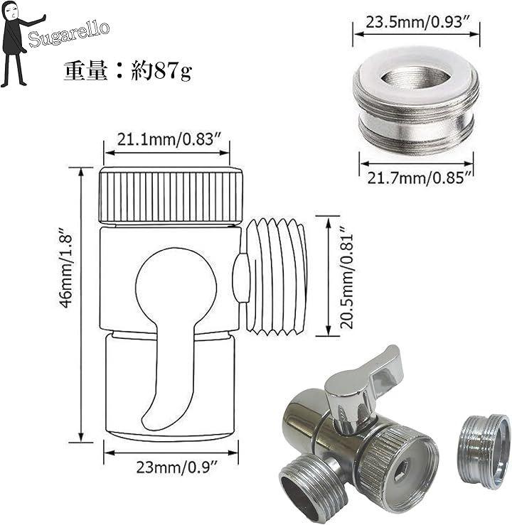 水道蛇口の先端に取り付ける2方向分岐水栓です。