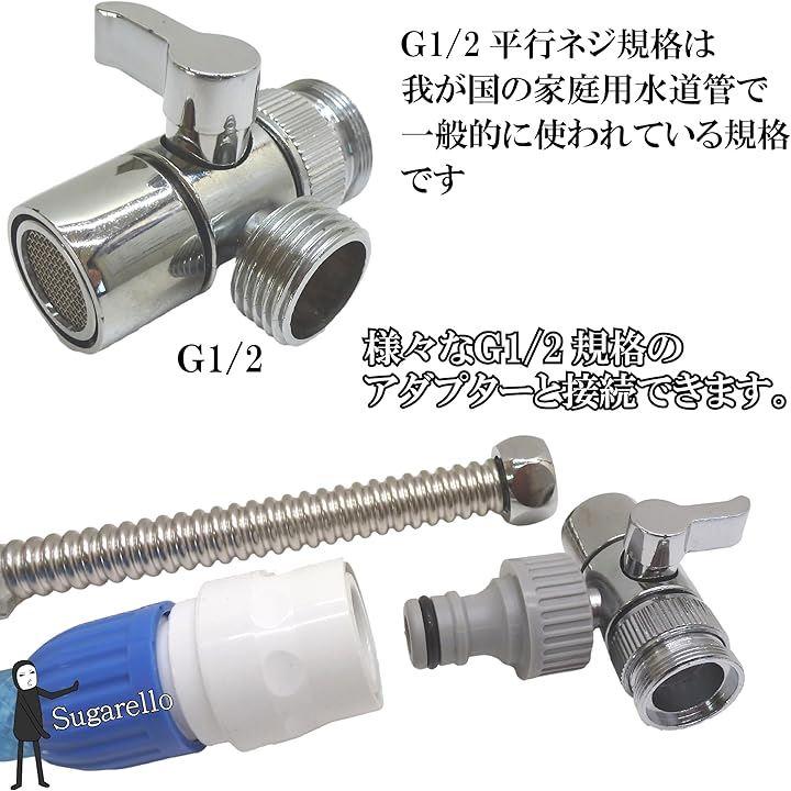 G1/2の多くのアダプターが出回っていますので、ジャバラフレキ管や散水ホースの接続等、様々な接続が可能です。