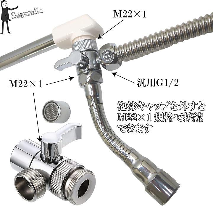 接続はキッチン蛇口の整流キャップ等によく使われているメーター細ネジ、M22x1です。