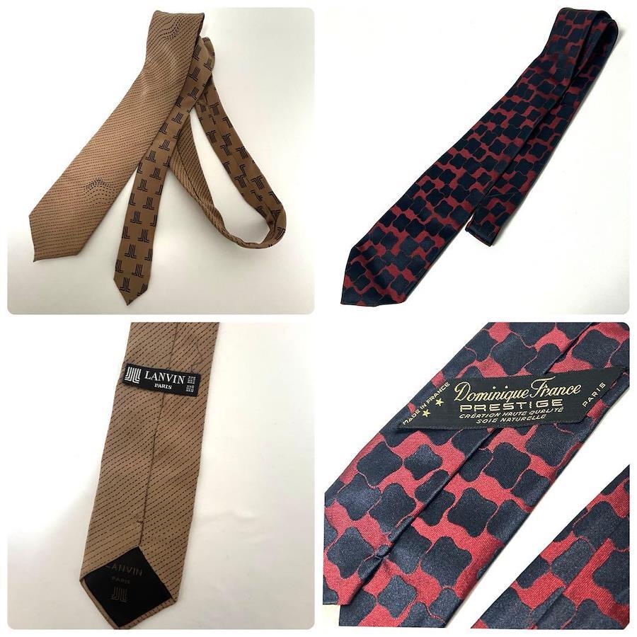 Brand-name tie set (10 ties) including LANVIN, Dominique Mila Schn, A-LOOK, Dominique France, etc., for business and formal wear.