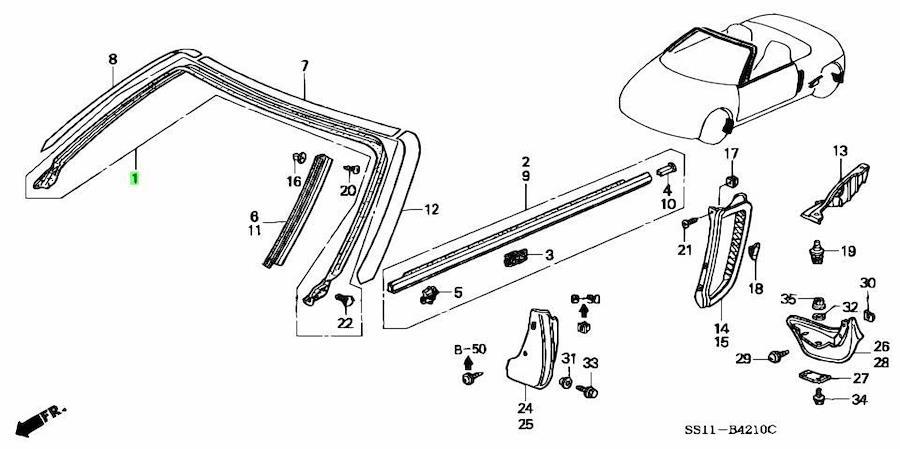ホンダ純正 ビート PP1 フロントルーフ フロントピラー ウェザーストリップ フロントモール モール