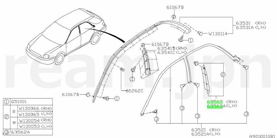 スバル純正 インプレッサ STi WRX GD GG Bピラーカバー センターピラー ガーニッシュ 左右