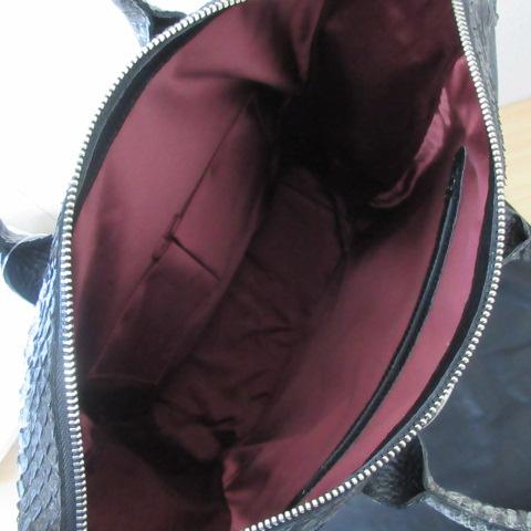 中の生地のカラーはワインレッドで、両サイドに内ポケットがついています。
