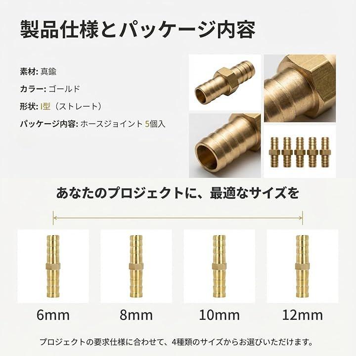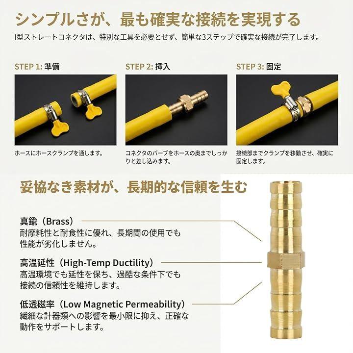 「耐久性」真鍮製のホースジョイントは、耐摩耗性と耐食性に優れ、長期間の使用が可能です。