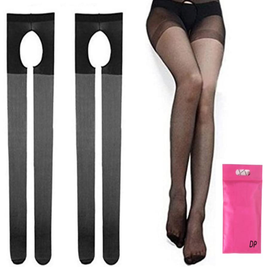 Bravebird Perforated Stockings, High-Quality Open Crotch Pantyhose, 3-Piece Set, Sexy Cosplay Compression Glossy (Black, 3 Pairs) bb60