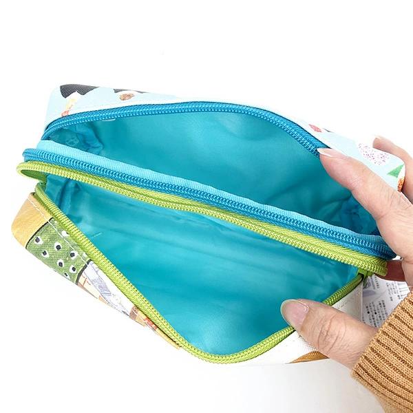 ボックス型で大容量!チャックが二つあり2部屋に分かれているので収納に便利♪表面と裏面でイラストが違うのもカワイイポイントです♪