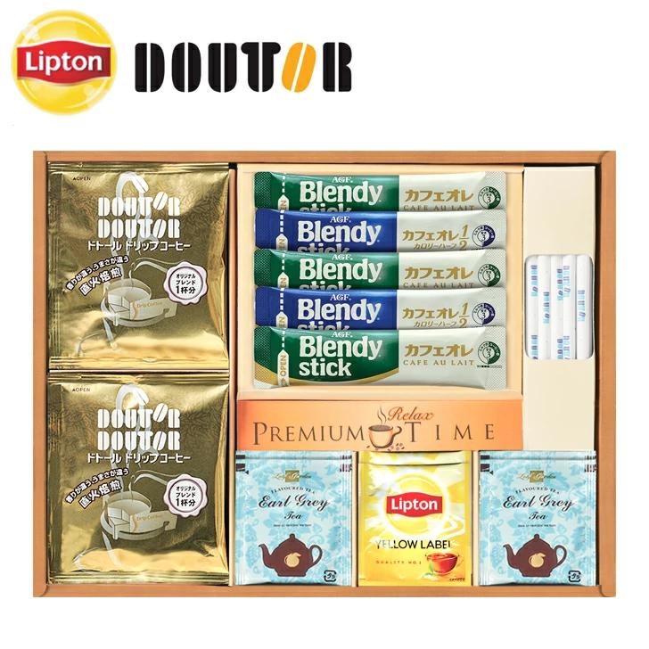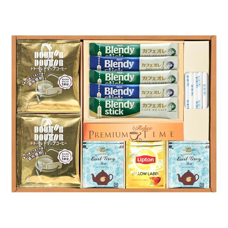 ドトールドリップコーヒー×6、アールグレイ紅茶ティーバッグ×4、ブレンディスティックカフェオレ×3、ブレンディスティックカフェオレ(カロリーハーフ)、リプトンイエローラベル×各2、ドトールスティックシュガー×15【乳】