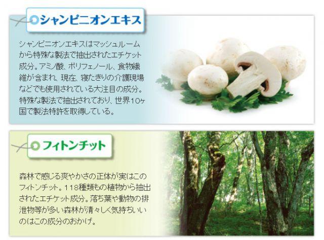 森林浴で一躍有名になったフィトンチットエキスや、植物由来の自然派素材デオアタックといったエチケット成分に加え、有胞子性乳酸菌にビフィズス菌、オリゴ糖を加えた3つの善玉菌、さらに現代の食生活では不足しがちとされる食物繊維と、7成分を配合。