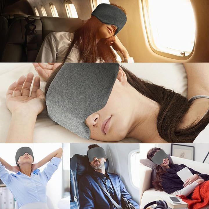 「シーンを選ばない快適さ。日常使いから旅先まで頼れる相棒」 寝室での安眠はもちろん、昼寝、飛行機や新幹線での移動中、オフィスでの仮眠まで、あらゆるシーンで光をシャットアウト。