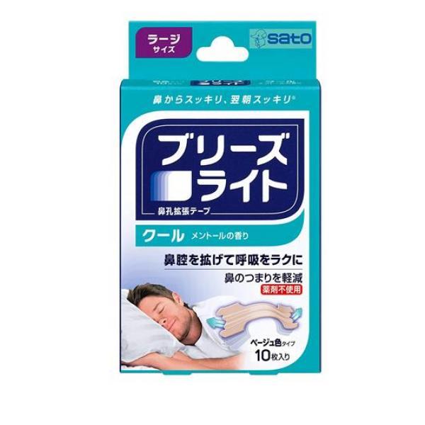 製品の特徴●ブリーズライト クール <鼻孔拡張テープ>●プラスチックバーの反発力で鼻腔を拡げ、鼻の通りをよくします。●貼った瞬間から鼻腔を拡げて呼吸を楽にし、はがすまで作用が持続(※1)します。●薬剤を使用していないため、薬を飲んでいる時でも使用でき、眠くならないので運転中でも使用できます。●プラスチックバー2本で通気率を最大31%アップ(※2)します。●表面を指でこすると”メントール”の香りがひろがります。●肌色タイプ●レギュラーサイズ(17mm×55mm)/ラージサイズ(19mm×66mm)