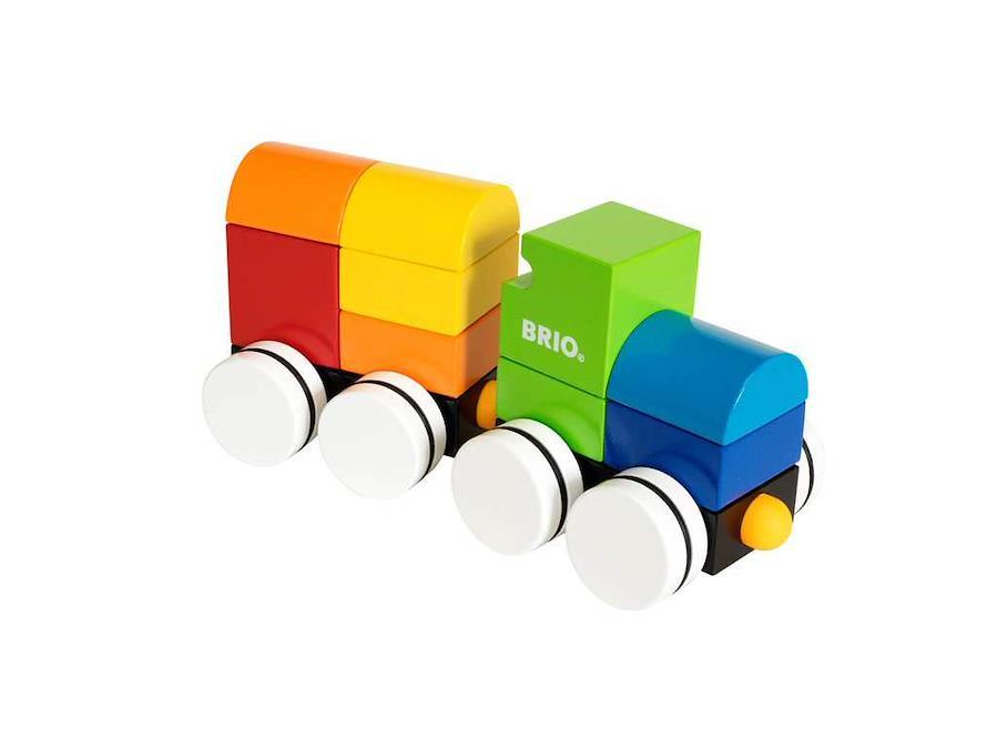 人気のクラシック玩具、マグネット式スタッキングトレインのカラフルバージョン。