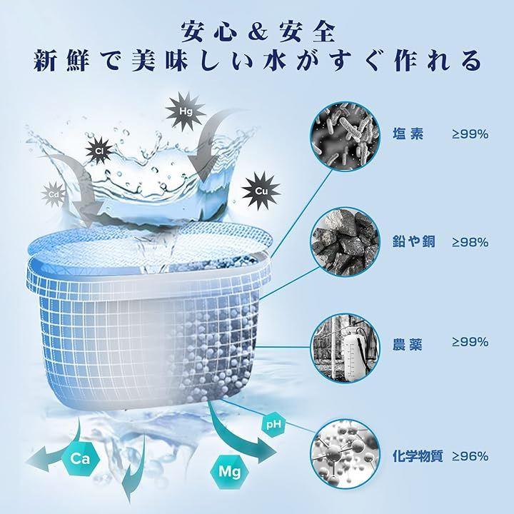 このカートリッジは、水中の不純物や塩素、重金属などを効果的に除去し、おいしい水を作り出します。