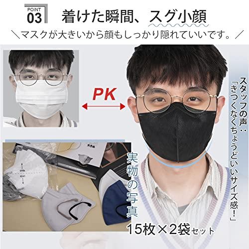 【大きめマスク?バイカラー】待望の3D大きめマスク新登場!!【Point①】多くのお客様にご愛顧頂いているBrodio大きめサイズの黒色マスクから、皆様のご要望にお応えし「3D大きめサイズ」をリリース!マスクサイズ「132mm×150mm」、耳紐幅「6mm」、長さや伸び具合なども改良。さらに、耳ひももトレンドのカラーで、マスクをかけると顔を美しく見せてくれますよ。【Point②】より多くの男性に使っていただけるよう、マスクのサイドの長さを長くし、顔の大きな男性でも着用できるようにしました。多くのお客様のご意見を元に開発した商品ですので、より多くのお悩みを解決できる自信作でございます。【Point③】マスクはこれまでと同じの上質な素材を使用し、通気性も向上させ、通常の3Dマスクよりも快適でソフトな使い心地を実現しました。【Point④】シンプルなバイカラーで仕事もプライベートもカッコよく、性別・世代お問わず着用できます。【日本KAKEN検品?99%カット】三層構造の高密度フィルターを採用!日本権威的な検定機関KAKENのカケンテストをクリア!高い防護性能はBrodio快適さの前提となっています。日本の検査機関でフィルター性能の検査を行い、(微粒子)PFE99.6%、(バクテリア飛沫)BFE99.6%、(ウィルス)VFE99.5%以上、安心・安全の高品質フィルターを使用し、花粉や細菌を99%カット。【立体構造?超快適防護】3D立体構造設計で、口元とマスクの間に一定の隙間を作ることにより、息がしやすくなります。高性能マスクは通気性に優れた素材を使用しているため、防御効果を保証する上、呼吸もしやすくなります。【耳が痛くならない】マスクは幅6㎜のストレッチ耳ゴムを採用し、幅広なひもで耳への負担を軽減できて、長時間つけていても耳が楽です。また、耳ひもも非常に柔軟な素材を使用し、ソフトで切れにくく、着け心地も快適です。【基本情報】商品名:3D FIT MASK。サイズ:約132mm*150mm、大きめサイズ。【ご注意】マスクのデザインにつきまして、全カラーにおいて“マスク内側はホワイト”となっております。予めご了承ください。【ご注意②】本商品は30枚箱入りでございます。箱の中に15枚入の袋が2袋入っております。【ご注意③】中国製、日本国内検品済。KAKEN 99%カット認証済。弊社の商品を長くご愛用頂けますように、ご購入日より30日間のアフターサービスをご提供致します。不良品やご不明な点等があれば、の購入履歴より、弊社にご連絡ください。
