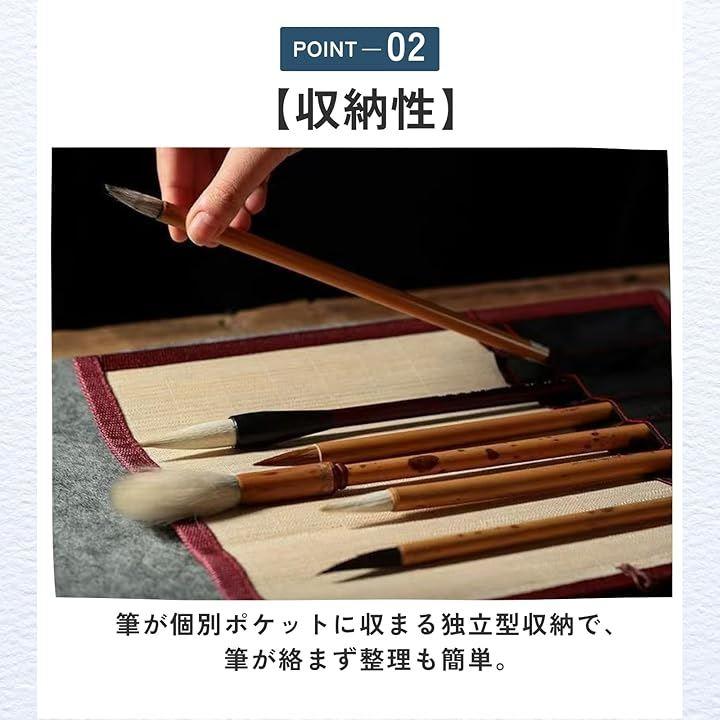 「収納性」筆が個別ポケットに収まる独立型収納で、筆が絡まず整理も簡単。