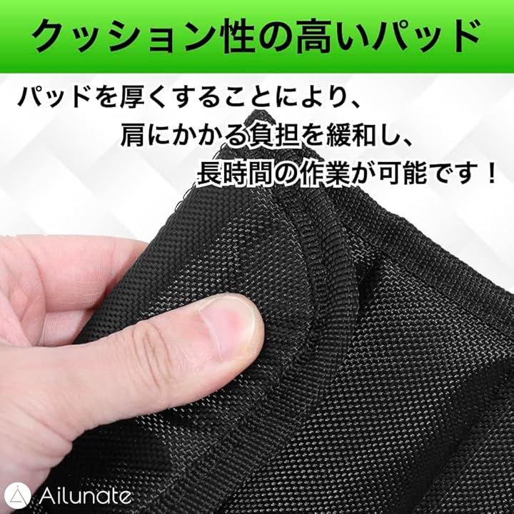 「肩・背中・腰にクッション性の高いパッドを使用」肩パッドを厚くすることにより、肩にかかる負担を緩和し、長時間の作業が可能です。