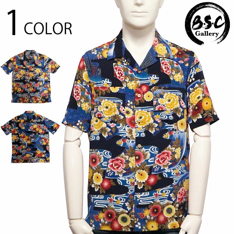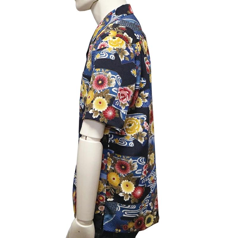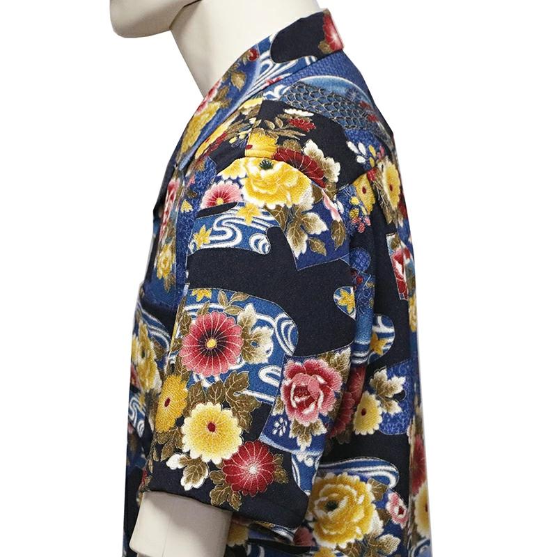 菊水 柄 縮緬 和柄 アロハシャツ です。