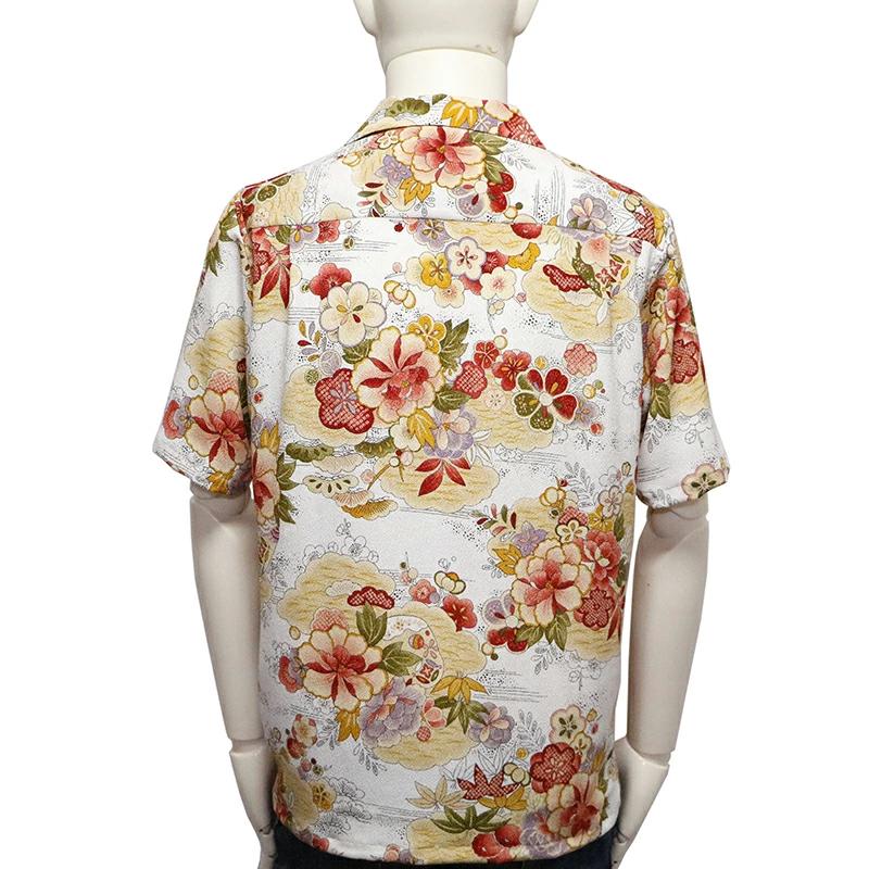松竹梅 柄 縮緬 和柄 アロハシャツ