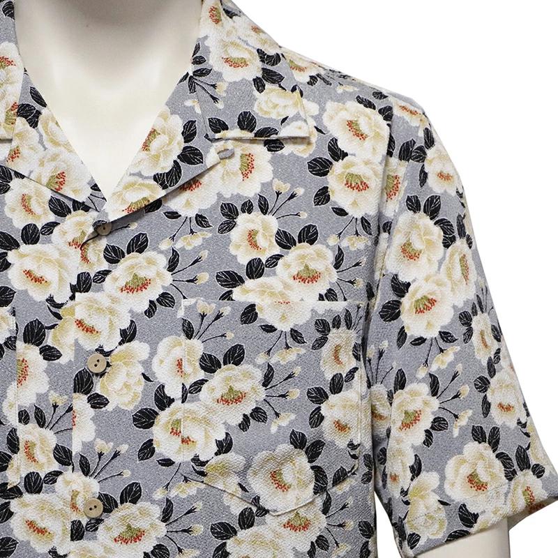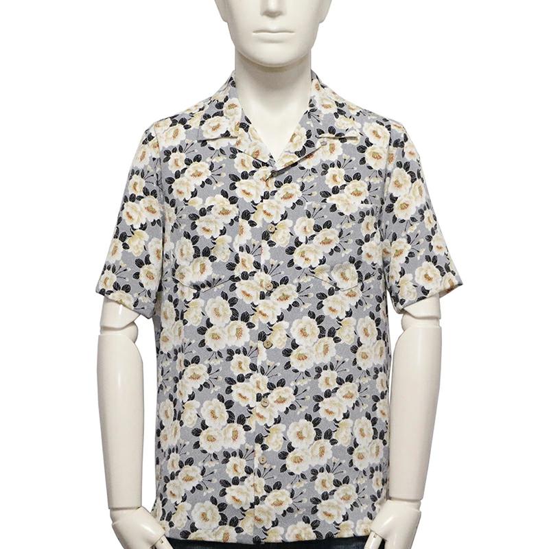 BSC Gallery Kyoto Original Yaezakura Crepe Aloha Shirt (S22003) Bespoke Shirt Aloha Shirt Yuya Yaezakura Sakura Allover Pattern Crepe Made in Japan Gray