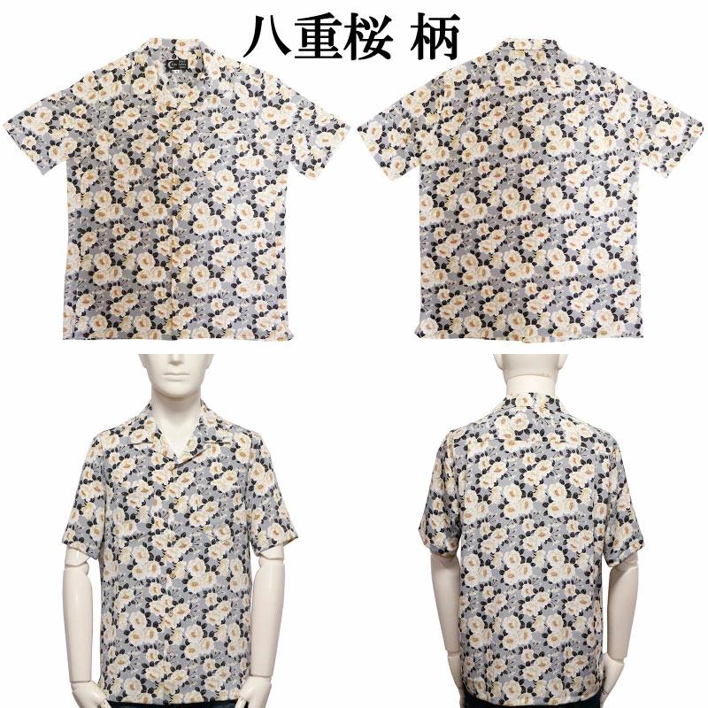 八重桜 柄 縮緬 和柄 アロハシャツ