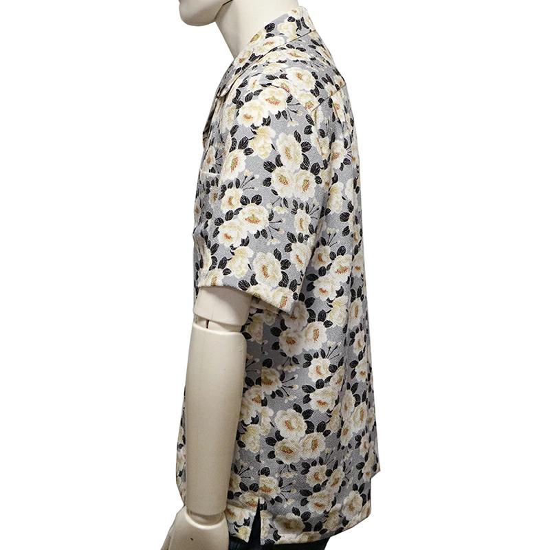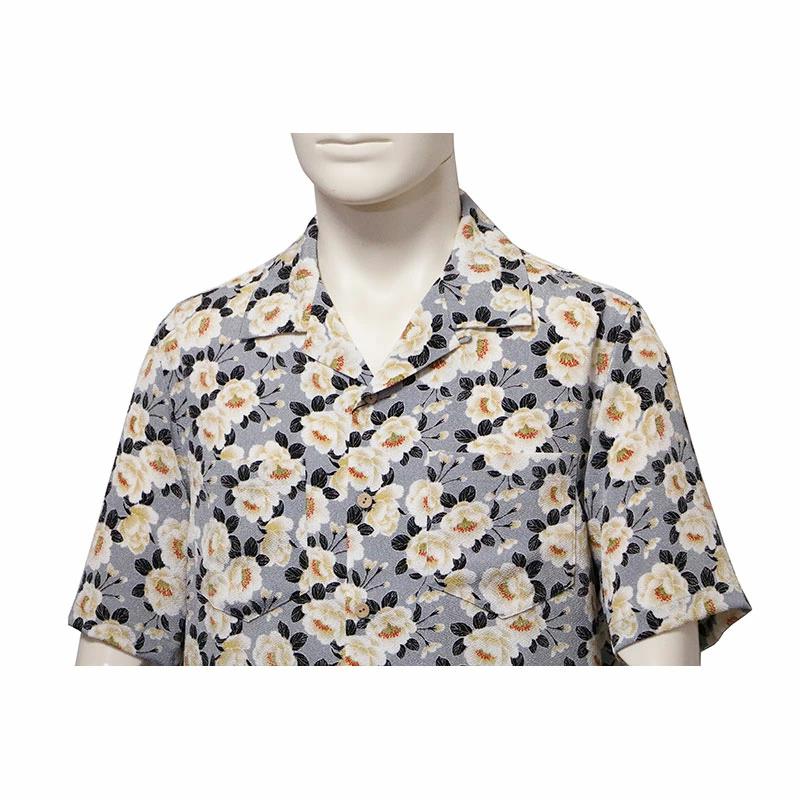 八重桜 柄 縮緬 和柄 アロハシャツ