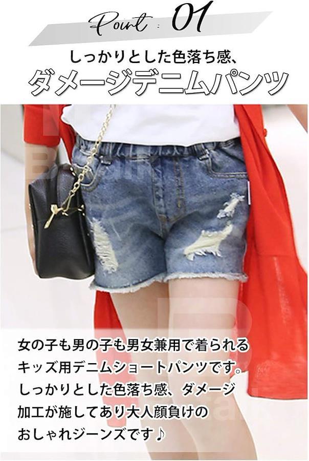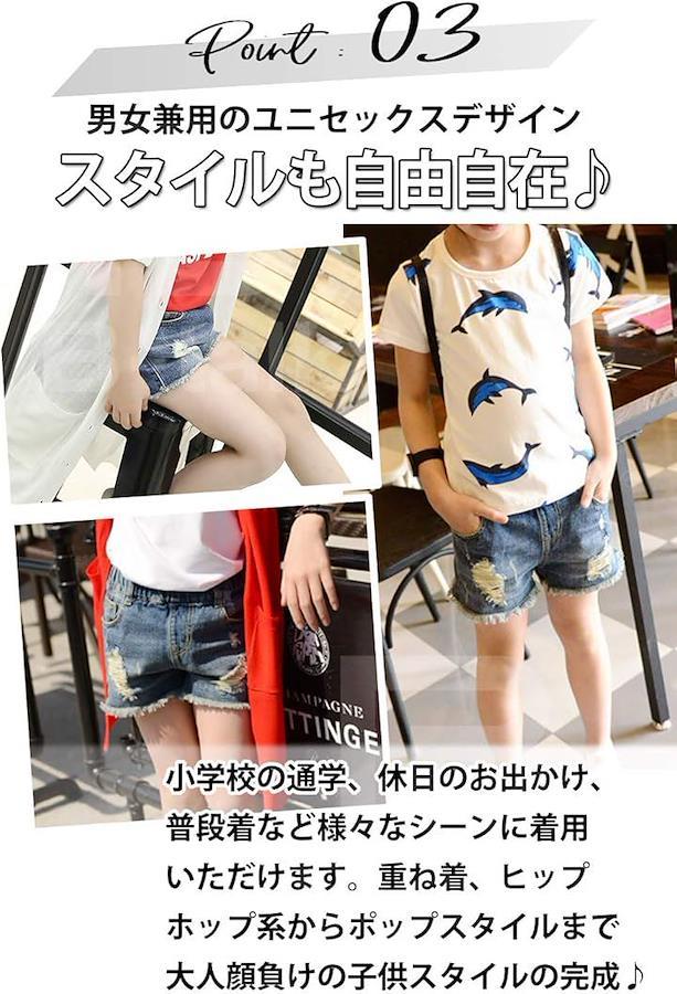 女の子も男の子も男女兼用で着られるキッズ用デニムショートパンツです。