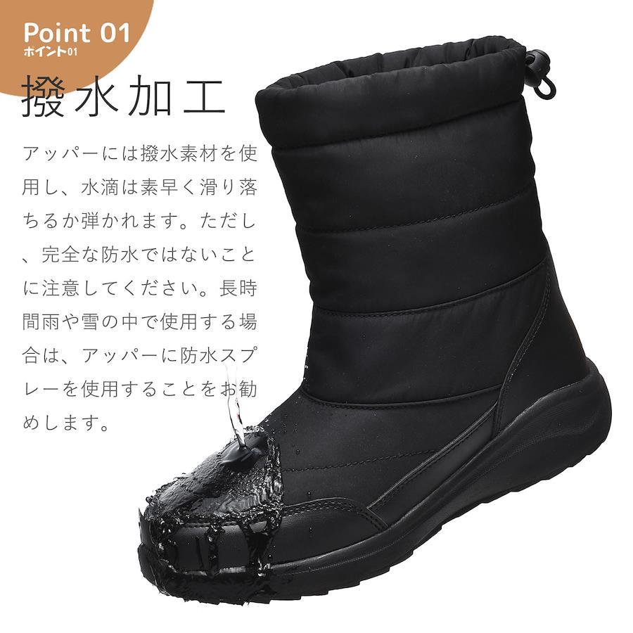 耐水レベル 耐水 防寒保温&軽量:スノーブーツの内部は加絨素材で、厳しい寒さから足元を守るとともに、軽快な履き心地を提供します。耐水性:高品質の防水生地を使用し、水滴を効果的にはじき、雨水や雪水の浸透を防止します。長時間の使用には撥水スプレーの利用をおすすめします。防滑耐久性:靴底には強力なグリップ力があり、湿った地面や雪道でも安定した歩行をお約束します。ファッションと実用性の兼備:精巧にデザインされたハイカットスタイルにはコードアジャスターが付いており、冷たい風の侵入を防ぎます。ファッション性と実用性を両立させ、あらゆるシーンでお使いいただけます。暖かさだけでなく、おしゃれな足元を演出します。多機能な用途:冬の屋外活動、雪地旅行、スキー、買い物などに最適で、冬の生活の理想的なパートナーです。また、家族や友人への心のこもった贈り物としてもおすすめです。