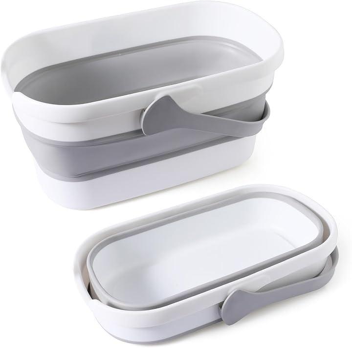 「実用的な折りたたみ バケツ」:取っ手がついているので持ち運びにも便利です。