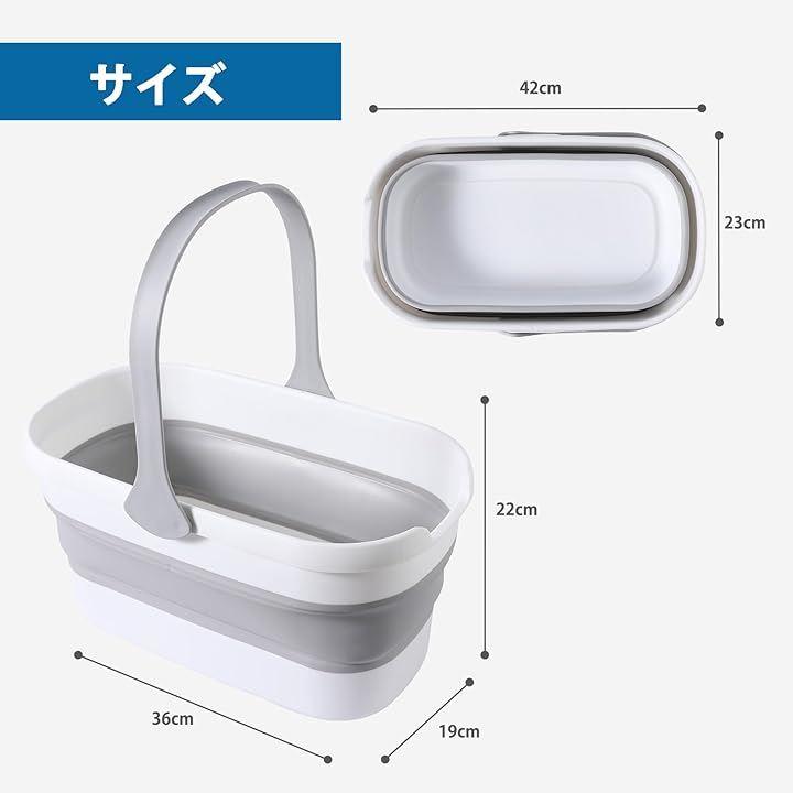 「折りたたみ バケツ基本仕様」:サイズ:折りたたみ時(約)42x幅23x高さ7cm。