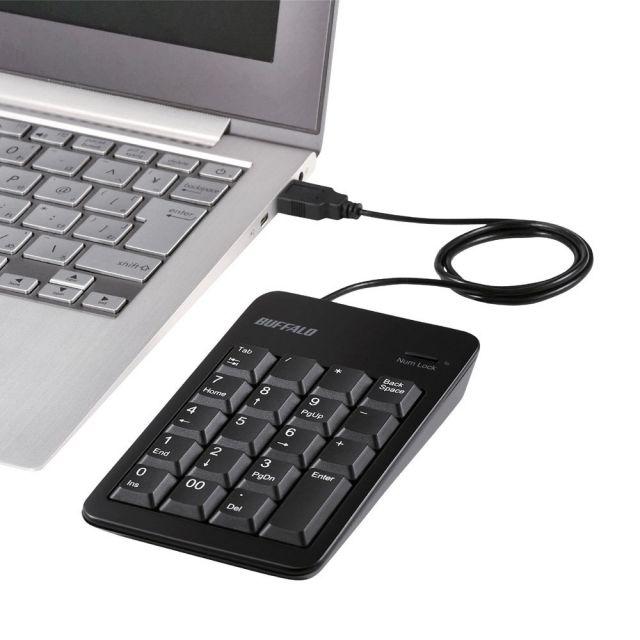 Buffalo Wired Numeric Keyboard with Tab Keys and USB Hub, Black, BSTKH100BK