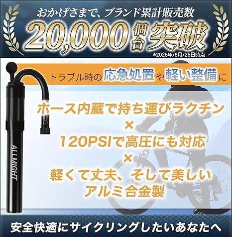 ・「あなたのサイクリング体験を快適にする空気入れ」コンパクトながら高性能な「ALLMIGHT」の空気入れで、安心・安全なライドをサポートします。