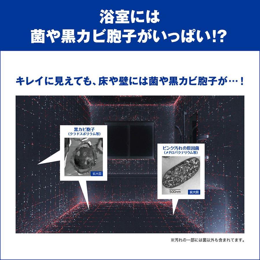 商品サイズ (幅×奥行×高さ) :21.5×34×6 内容量:1040ml 水をかけると泡がサッと消えてすすぎが早いから、時短・節水 洗浄中はほのかに香り、すすいだ後スッと消える、香りが残らないタイプ 菌や黒カビ胞子に直接アプローチする技術