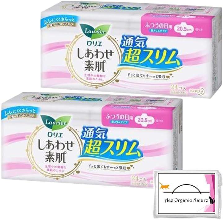 ・ロリエ しあわせ素肌 超スリム ふつうの日用 20.5cm 羽つき 24個入 x 2個 (合計48個) 特製ティッシュ付