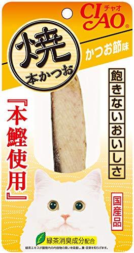 【原材料】かつお、かつお節エキス、ビタミンE、緑茶エキス【保証成分】たんぱく質26.5%以上、脂質1.5%以上、粗繊維0.1%以下、灰分2.2%以下、水分70.0%以下【エネルギー】約30kcal/本【賞味期限】18ヶ月【原産国または製造地】日本
