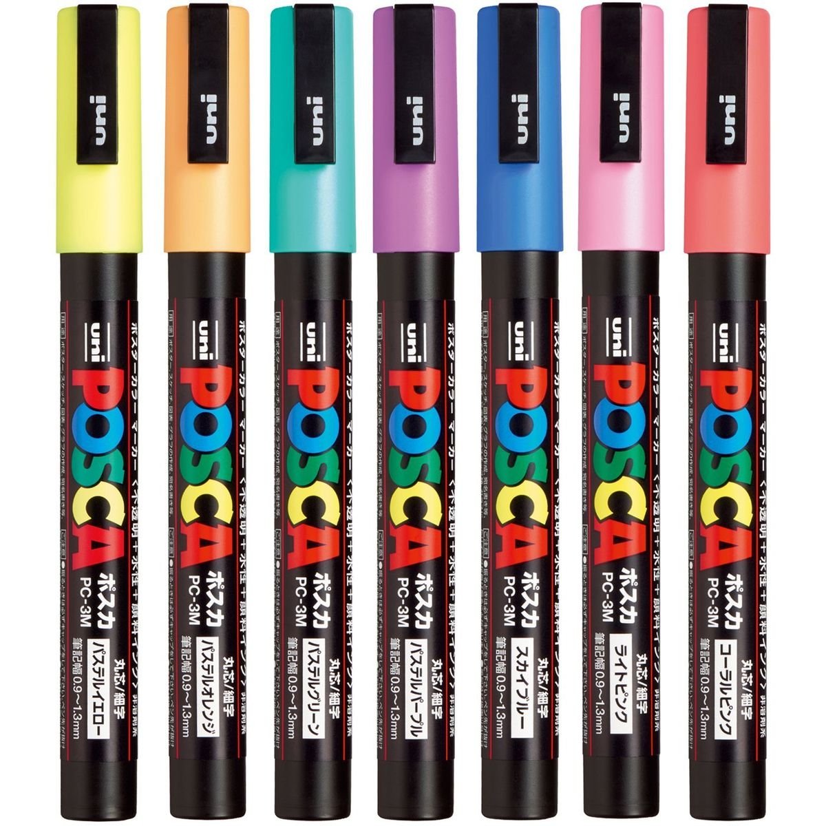 7色セット : インク色:パステル(イエロー、オレンジ、グリーン、パープル)、スカイブルー、ライトピンク、コーラルピンク細字丸芯/線幅0.9~1.3mmセット重量:125.5g商品箱サイズ :縦153mm×横117mm×厚さ20mm既存インクの色相よりも明度を高くした、淡い色調のポスカです。はっきりとした従来のインクと組み合わせて使うことで、より表現力が高まり、作品の完成度が増します。●ポスターカラーのような鮮やかな発色、濃い色の上にも書けます!。●プラスチック・金属・ガラス・写真など、様々なものに筆記可能。●耐光性に優れているので、乾けば水に流れません。●水性インクなので、イヤなにおいがしない!。