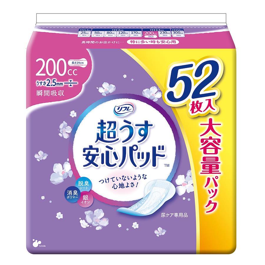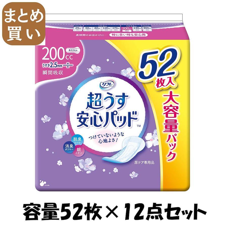 〇商品仕様リフレ超うす安心パッド大容量200CC52枚×12点セット単品サイズ460×305×455(mm) 容量52マイ(出典:リブドゥコーポレーション)